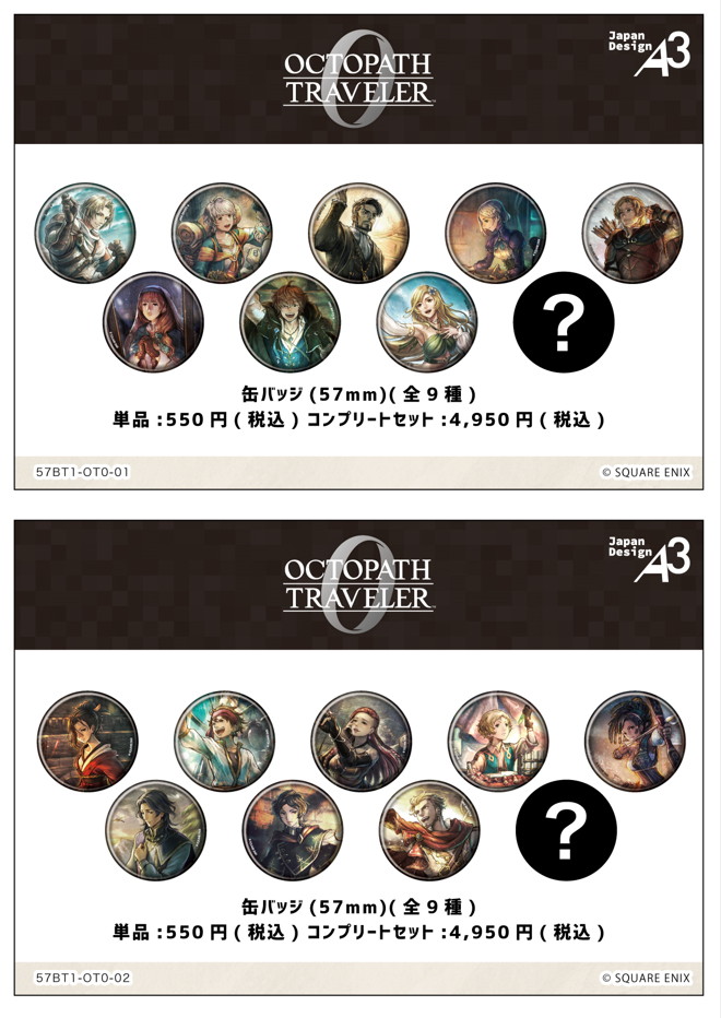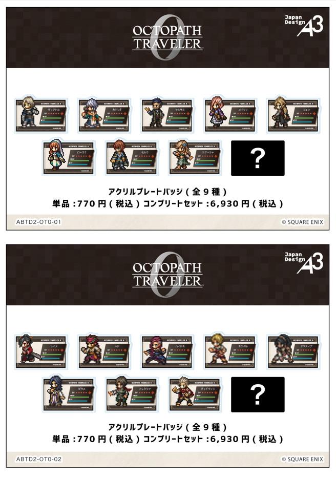 対象商品には、缶バッジ、ミニ色紙、アクリルプレートバッジ、クリアステッカーミニ4種セット、プレミアムマルチラバーマット、パスケース、アクリルプレート(全31種)などの『オクトパストラベラー0』発売記念POP UP SHOP商品が含まれる。