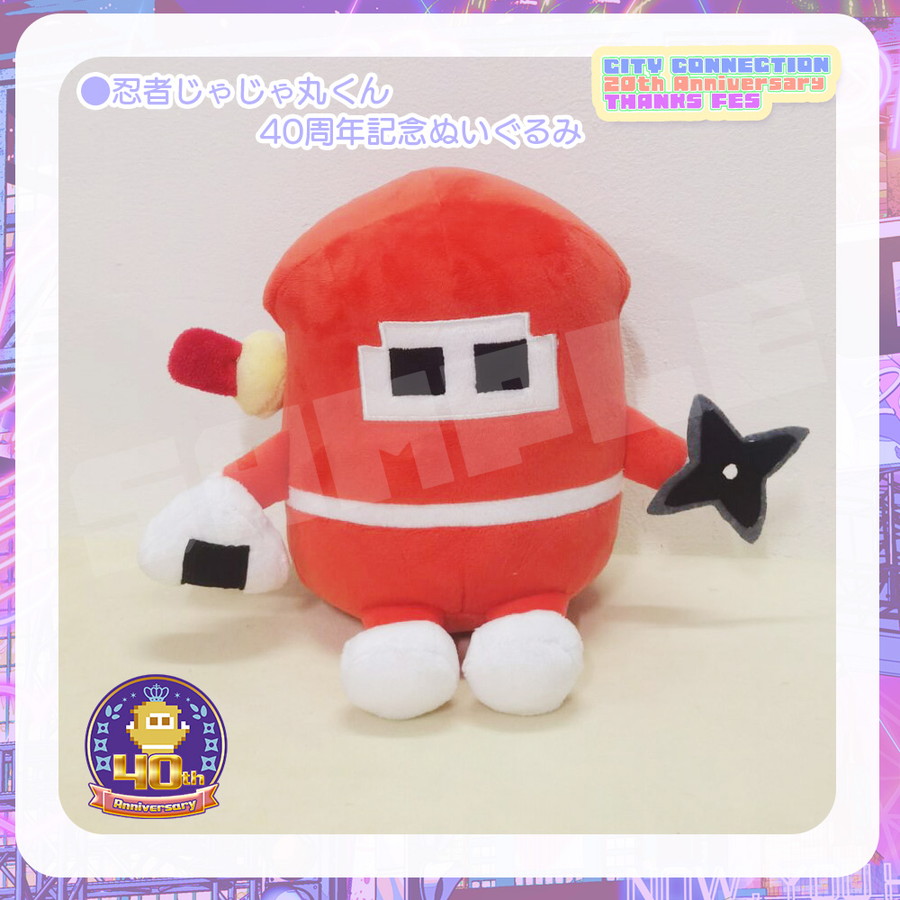 また、『忍者じゃじゃ丸くん』の関連情報として、ゲーム発売40周年を記念したぬいぐるみ(販売予定価格:4,800円(税込))が、12月15日正午頃よりクラリスショップで販売開始予定である。