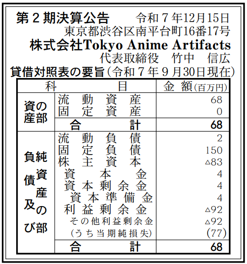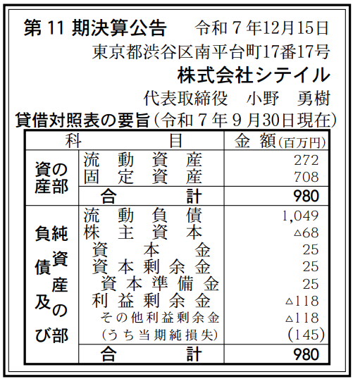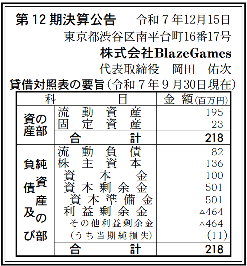 Cygamesの2025年9月期(第15期)の決算は、売上高1375億2800万円(前の期比3.0%増)、営業利益331億5800万円(同103.3%増)、経常利益330億4500万円(同103.5%増)、最終利益217億8200万円(同136.5%増)と大幅な増収増益だった。12月15日付の『官報』に掲載された「決算公告」で判明した。