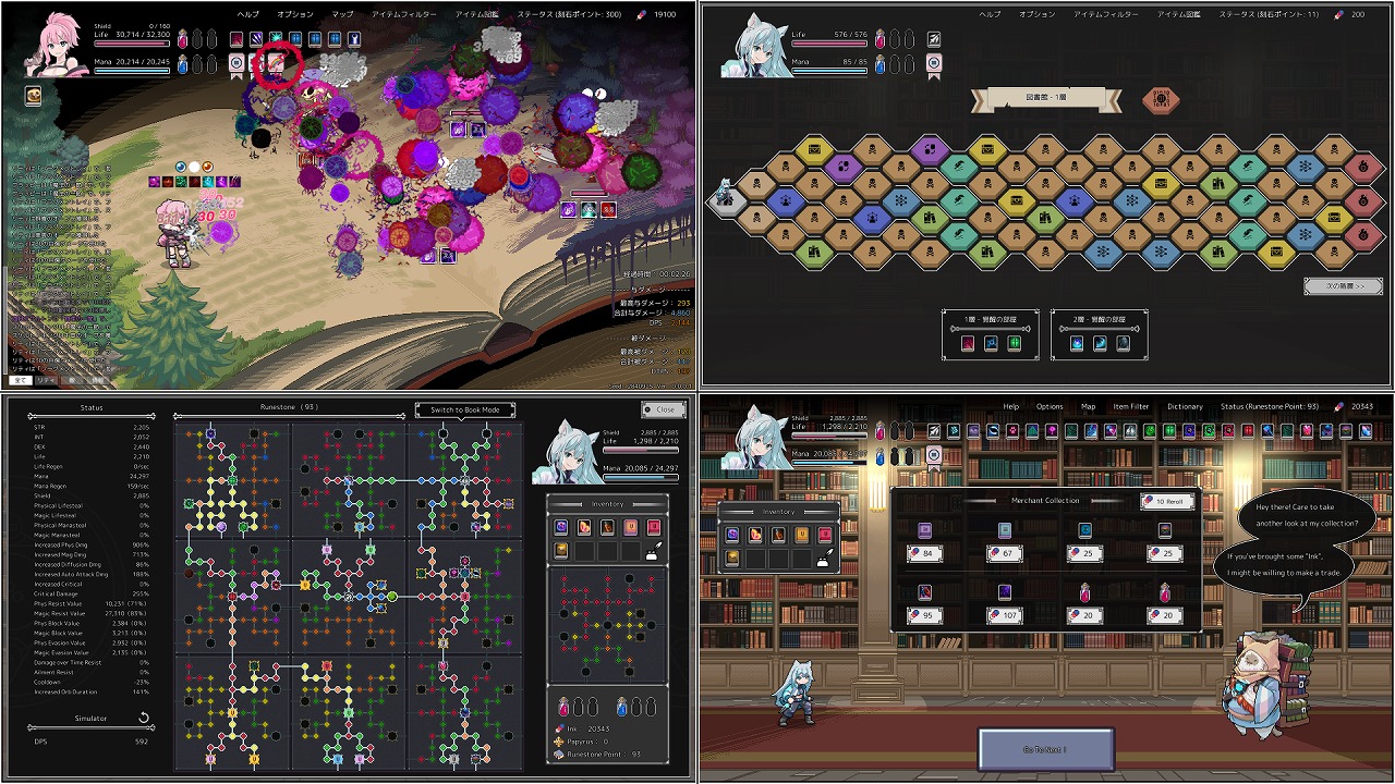 早期アクセス時点で200を超えるユニークアイテムと、3人のプレイアブルキャラクターが実装されている。ダンジョンも1~4層があり、5段階の難易度が用意されている。今後も精力的なアップデートで、より多彩で複雑なビルドを楽しめるようなゲームになっていく予定。