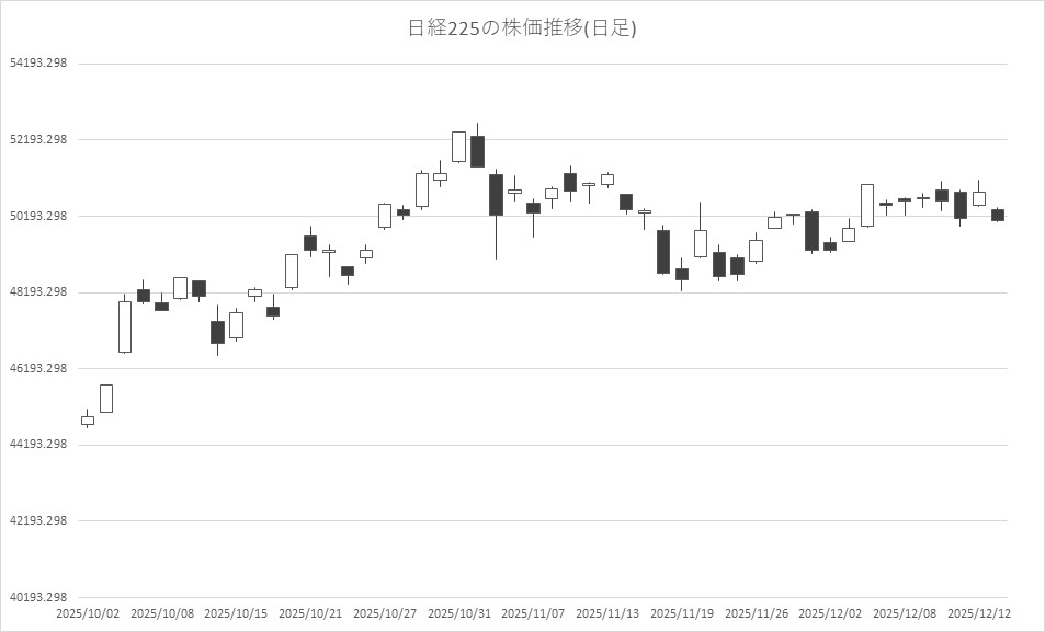 12月15日前場の東京株式市場は反落。日経平均株価は、前営業日比744円45銭安の5万0092円10銭で午前中の取引を終えた。前週末のハイテク株の下落を嫌気し、指数寄与度の高い半導体関連の下落が目立った。