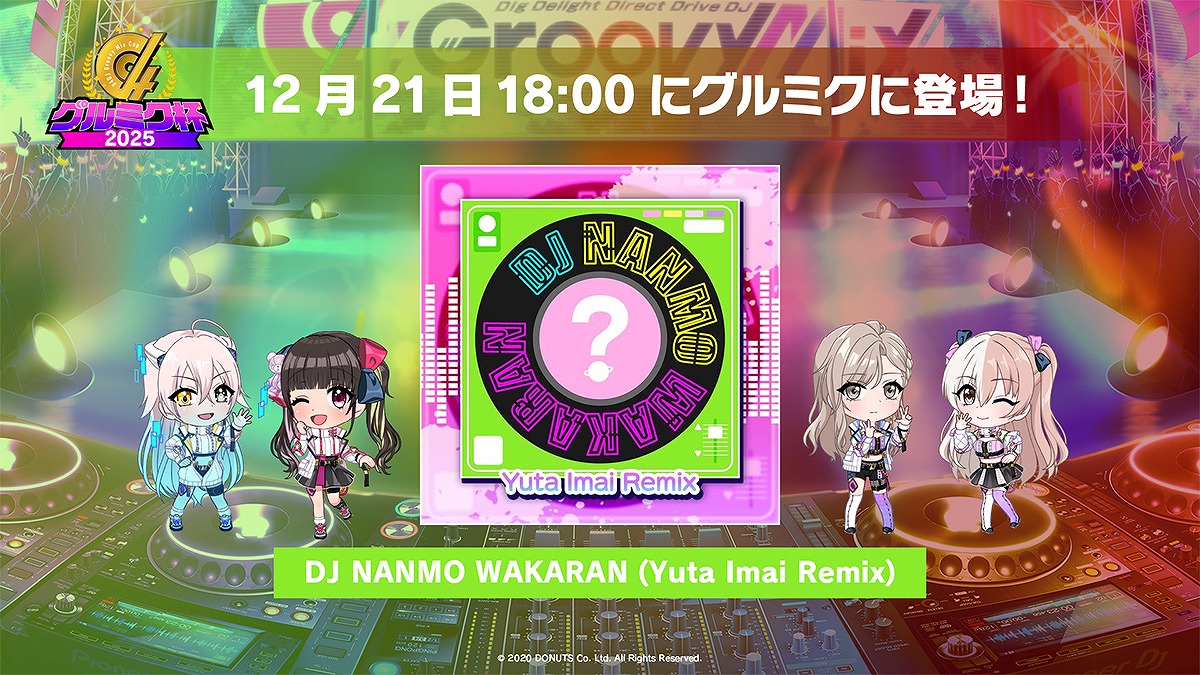 「グルミク杯2025」決勝戦の隠し楽曲で登場した「ハジマリビート(TAG Remix)」、「Get into the Abyssmare(かめりあ's "ULTRA ABYSSUM" Remix)」、エキシビジョンマッチで登場した「DJ NANMO WAKARAN (Yuta Imai Remix)」の3曲が12月21日18:00にグルミクに実装。