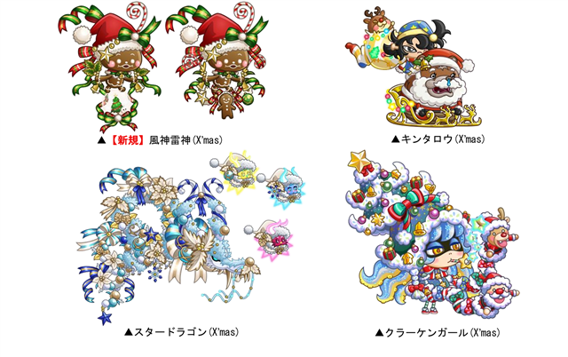 クリスマスをイメージした風神雷神の新しい激レアお着替えや、過去に登場したスタードラゴン、キンタロウ、クラーケンガールの激レアお着替えなどがラインナップされる「ホワイト X'mas アバたま」が期間限定で登場!ログインボーナスでチケットを手に入れ、ぜひ挑戦してみよう。