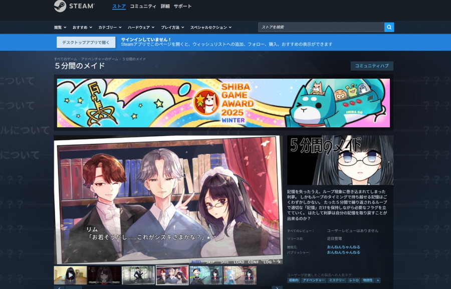 ゲーム制作サークル「おんねんちゃんねる」は、本日12月15日、Steam向けビジュアルノベル&脱出ゲーム『5 分間のメイド』の体験版をリリースした。製品版のリリースは2026年を予定しているとのこと。想定クリア時間は2〜4時間程度。また、国外のプレイヤーにも体験してもらうため、中国語(簡体字)および英語へのローカライズも決定している。