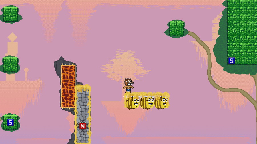 ・すべて手書きで描かれたドット絵により、懐かしさのあるレトロな雰囲気と、ちょっぴりバカゲー風のキャラクターが融合した奇妙な世界観が楽しめる。