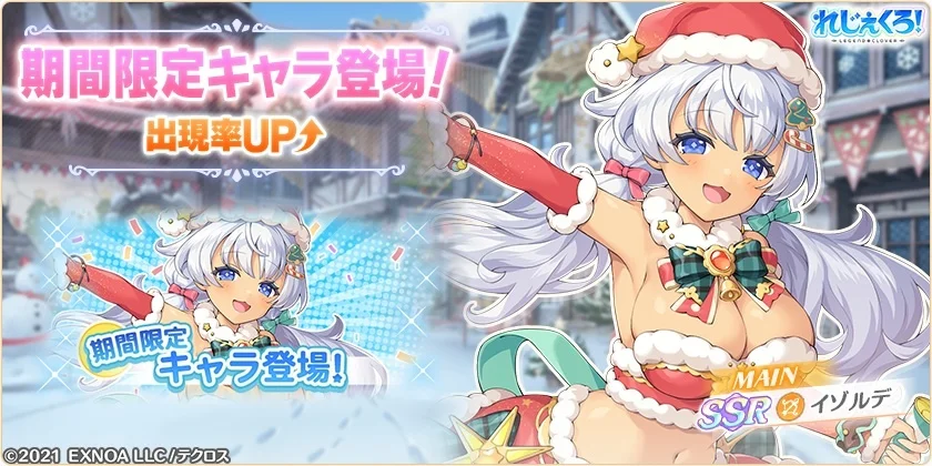 EXNOAが運営するDMM GAMESにおいて、真の英雄となる王道ファンタジー『れじぇくろ!~レジェンド・クローバー~』にて、12月16日からクリスマス衣装の「イゾルデ」「アンドロメダ」が新たに登場!さらに彼女たちが活躍するイベント「白き手に愛を乗せて」も開催している。