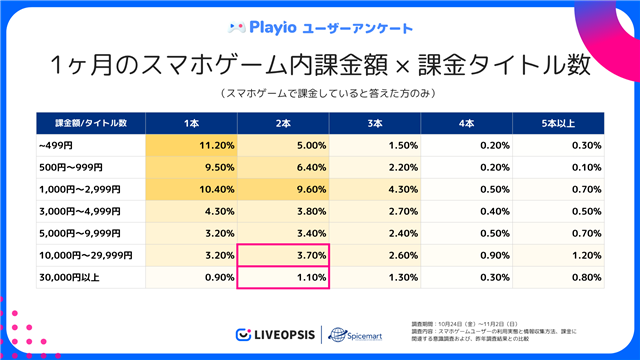 スパイスマート、ポイ活アプリ『Playio』日本版ユーザーを対象にスマホゲーム課金行動を調査 タイトル絞り込み傾向の中、高額課金層は「2作品」課金傾向も
