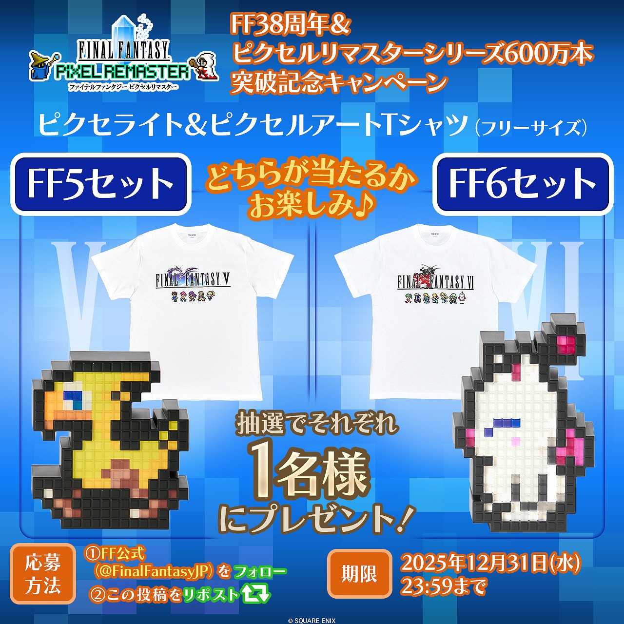 『ファイナルファンタジー』の発売38周年と“ファイナルファンタジー ピクセルリマスター“シリーズの世界累計販売本数600万本突破を記念して「ファイナルファンタジー」シリーズ公式X(@FinalFantasyJP)で、プレゼントキャンペーンを実施中。