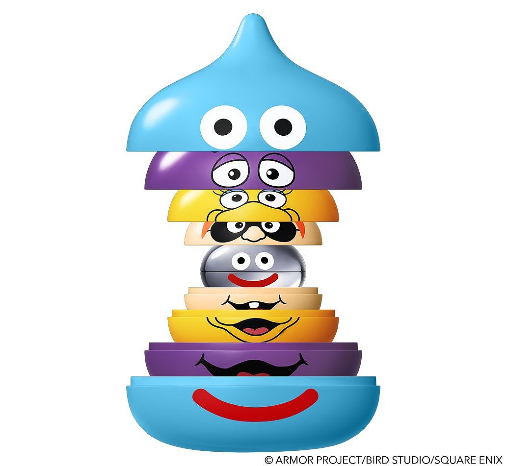 人気キャラクターであるグリマス、バーディ、ハンバーグラーがスライムの形に変身し、「ドラゴンクエスト」おなじみのスライム、メタルスライムと共にフィギュア5種類が1セットとなった、ここでしか出会えない大変魅力的なグッズ。5種類すべてサイズが異なり、一番大きいものが通常のスライムで、大きいスライムを開けると中にはひとまわり小さい他のデザインのスライムが入っている。