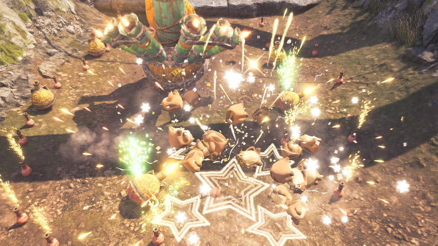 このイベントでは、煌びやかな装飾に変化した大集会所でハンターたちを迎える。期間中、プレイヤーは特別な食事が可能となるほか、ログインボーナスや限定イベントクエストなど、様々な無料コンテンツを楽しめる。イベント期間限定の祭事チケットを集めることで、特別なハンター防具「セレモニアルαシリーズ」やオトモアイルー装備「よちよちセクレトαシリーズ」の生産が可能となる。また、「セレモニアルαシリーズ」を装備して特定クエストをクリアすると、報酬に季節イベント限定枠が追加されるという。