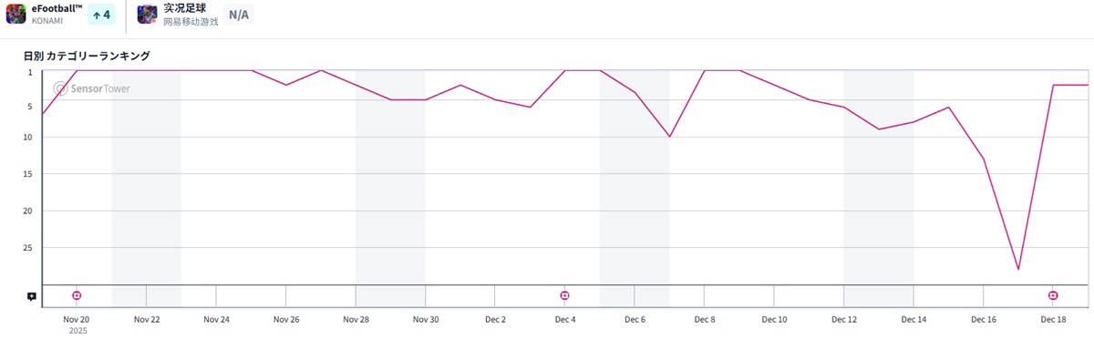 そして25ランクアップでコナミデジタルエンタテインメントの『eFootball』が3位につけている。