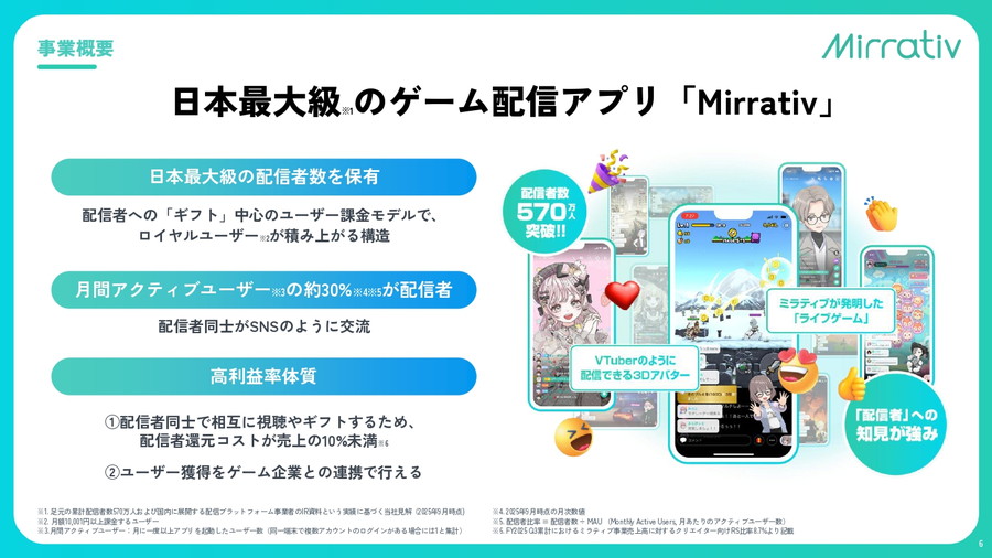 高いコミュニティ密度と低コスト構造という独自性を背景に、ミラティブは「配信プラットフォーム」から「ストリーマー支援インフラ」へと進化しようとしている。その成長の持続性が、今後の最大の注目点となりそうだ。
