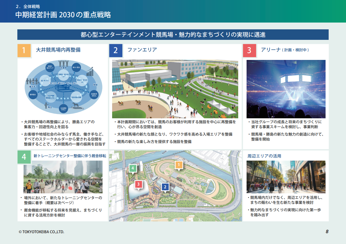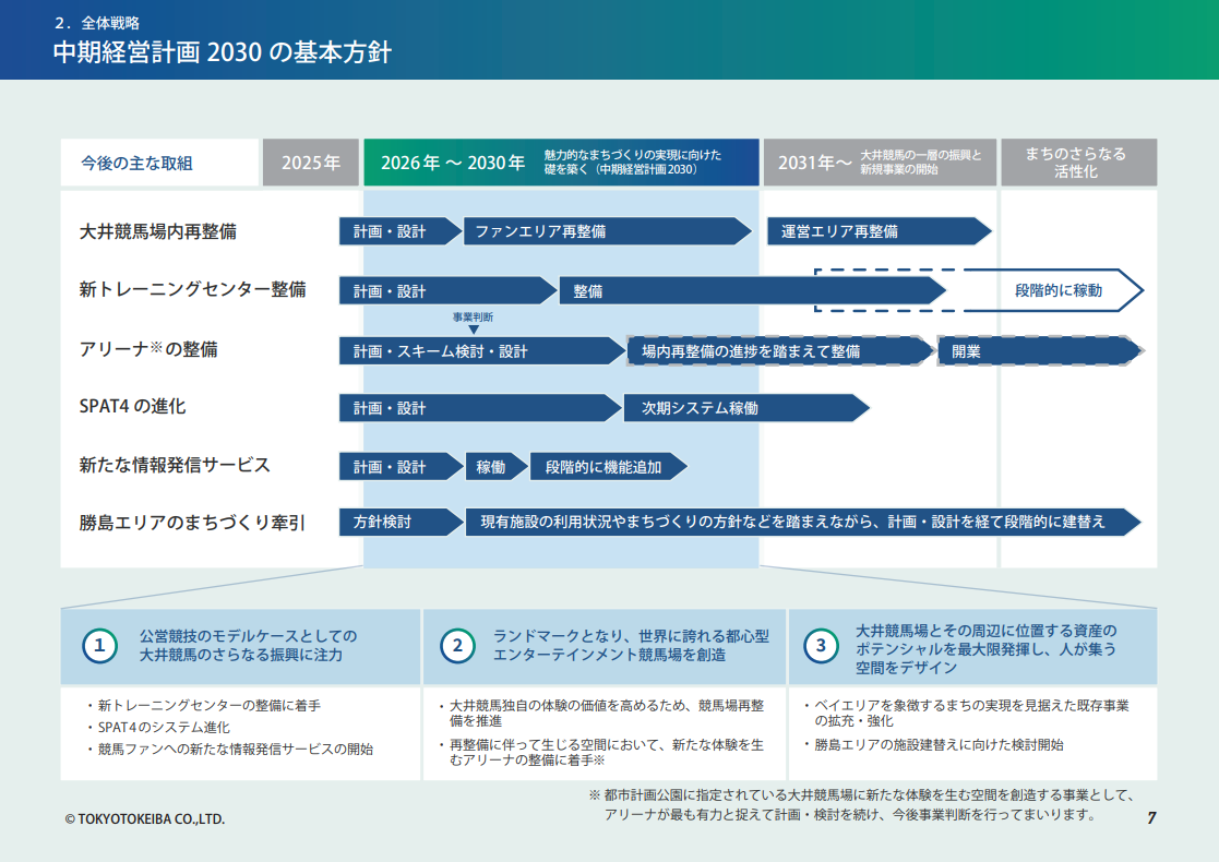 なお、同時に中期計画も発表しており、厩舎移転に伴い大井競馬場や競馬場のある勝島エリアの再整備も行っていくとのこと。