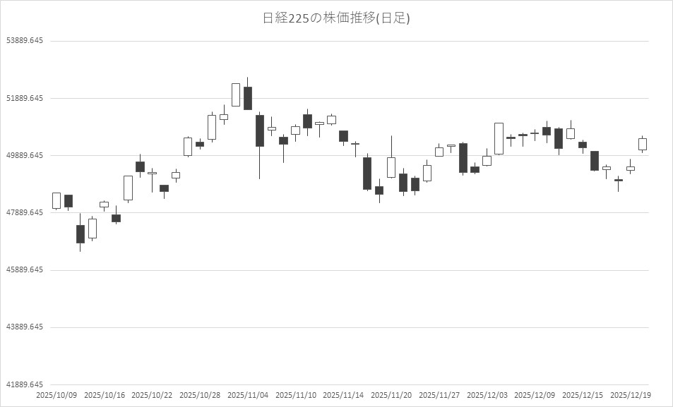 12月22日前場の東京株式市場は続伸。日経平均株価は、前営業日比973円55銭高の5万0480円76銭で午前中の取引を終え、5万円台を回復した。前週末の米国市場でハイテク株が買われた流れを引き継ぎ、AIや半導体関連を中心に物色された。為替の円安も支援材料となった。内需関連やディフェンシブ銘柄が売られており、東証プライムでは下落率は5割近くになったという。