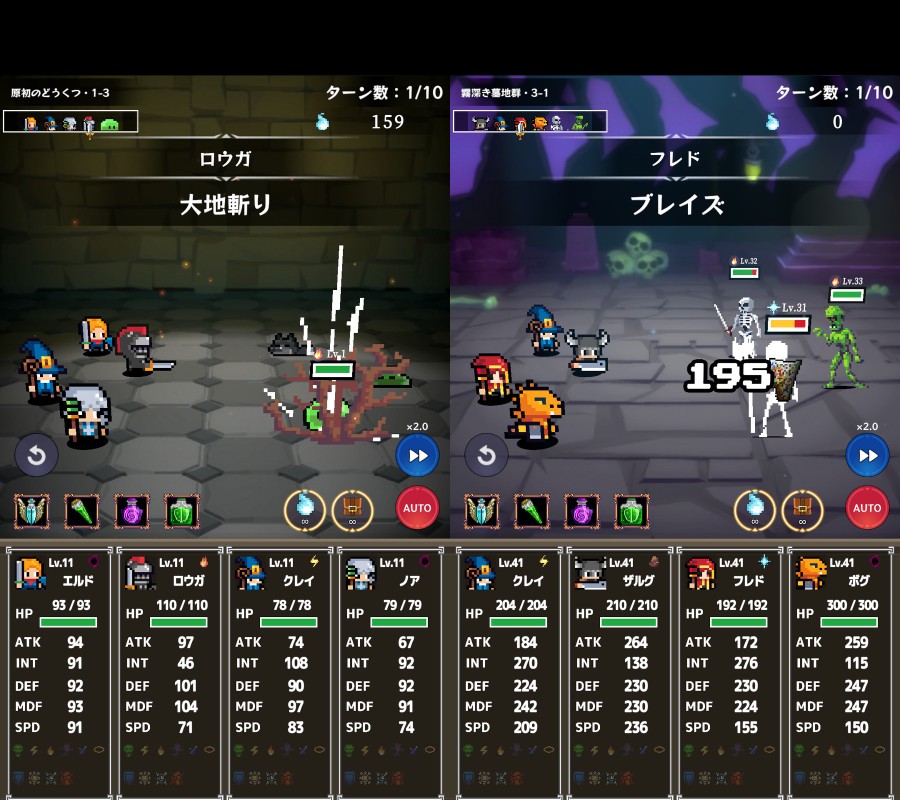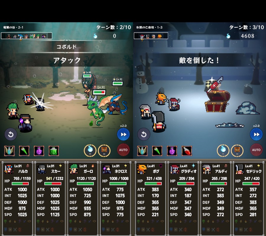 戦闘はフルオートで進行するが、「どのキャラクターを編成するか」「どの装備を選ぶか」といったプレイヤーの戦略的な選択が、結果を大きく左右する。戦略が噛み合った瞬間に得られる爽快感が大きな特徴である。