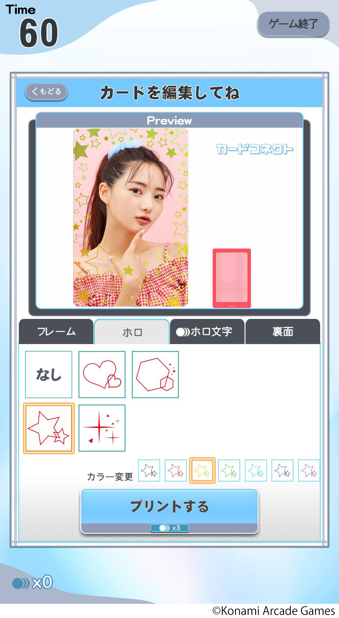 KONAMIの人気ゲームとつながり、ゲーム名刺の作成、プレー記録のカード化、さらにキャラクターの美麗カードの獲得や、オリジナルカードの作成など、カードを通じて新たな体験を提供する。両面印刷、ホログラム印刷に対応しておりクオリティの高いカードをプリントすることが可能。