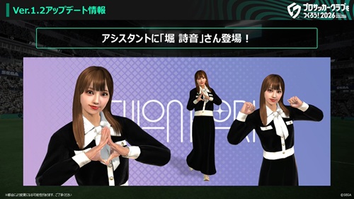 さらにクラブや選手ではないが、「サカつく アシスタントをつくろう!」での結果を受け、堀詩音さんがアシスタントとして、U字工事さん、相川暖花さん、豊永阿紀さん、井上里奈さんが特別練習カードとして、それぞれ『サカつく2026』に登場することも決まった。