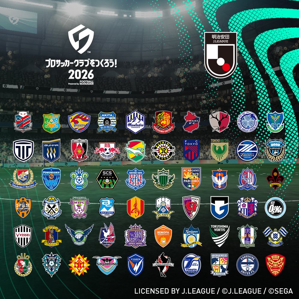『サカつく2026』は、明治安田Jリーグの公式ライセンスを獲得しており、J1~J3に所属する60クラブが実名選手として収録される。