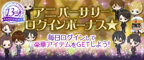 13周年を記念し、全12キャラクターが登場するイベントを配信している。新ストーリーのテーマは「もしカレがパパになったら♡」。新作のお部屋とアバターも用意しているので、ぜひストーリーと合わせてお楽しみください。