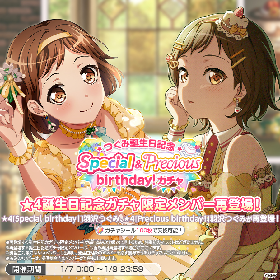 ・ブシロード、『ガルパ』で「つぐみ誕生日記念Special&Precious birthday!ガチャ」を開催