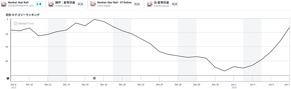 | 13 | 32 | ↑19 | 崩壊:スターレイル | COGNOSPHERE |
