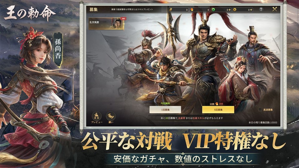 本作はガチャ価格は抑えられており、チーム編成も容易な戦略ゲーム。VIPによる属性差や特権がなく、ここでは戦略と協力だけが勝負を左右する。全プレイヤーが公平な環境で純粋な戦略の楽しさを満喫できる。