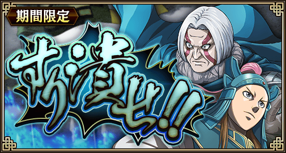 でらゲーは、『キングダム 乱 -天下統一への道-』において、1月14日18:00より新たな武将『LG剛摩諸』『LGバミュウ』をリリースしたこと、『すり潰せ!!』イベントが開催中であることを発表した。