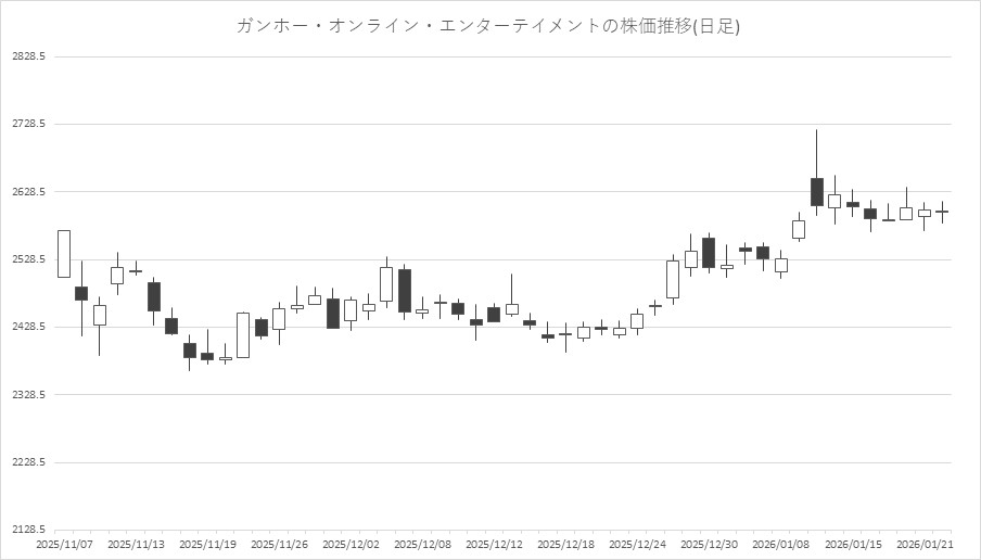 こうしたなか、ゲーム・エンタメ関連企業をみると、登録されている98銘柄のうち、上昇は56銘柄(57%)、下落は33銘柄(34%)、変わらずは9銘柄(9%)で、買い優勢だった。ただ、大手ゲームは売り優勢となっているほか、上がっている銘柄も上昇率1%以下の銘柄が多く、全体的に上値の重さも目立っている。