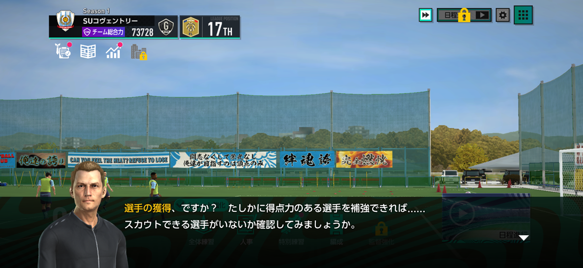 ふむ、まずは資金不足の解消についてか。資金難に喘ぐSUコヴェントリーにとっちゃー重要だね。俺がキッチリ、勝たせればいいって話でしょ。