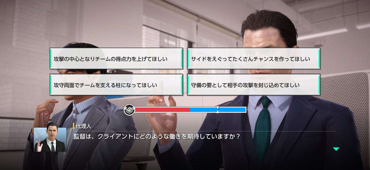 選手本人と代理人それぞれの質問に対して、最適な回答をすることがポイントみたいだね。