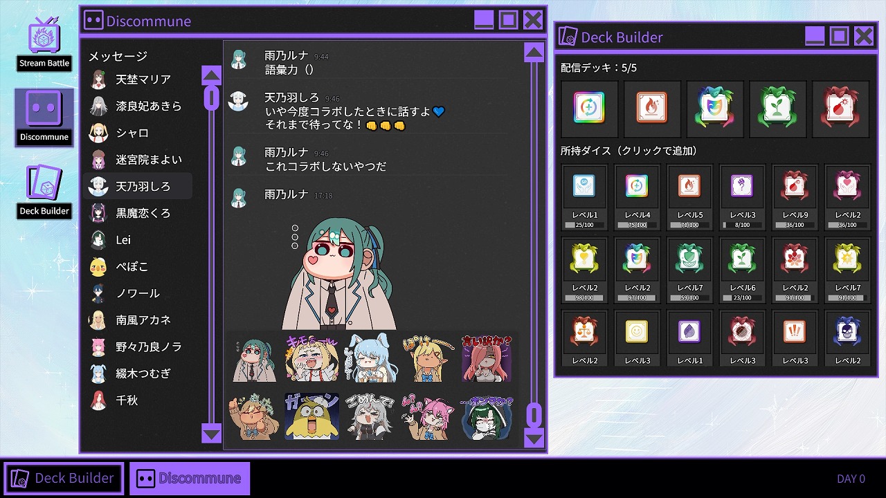 配信外では、グループ内のVTuberと交流できる。たわいもない会話をしたり、スタンプを送ったり、コラボの約束をしたり、犯人につながるヒントも得られるかもしれない。