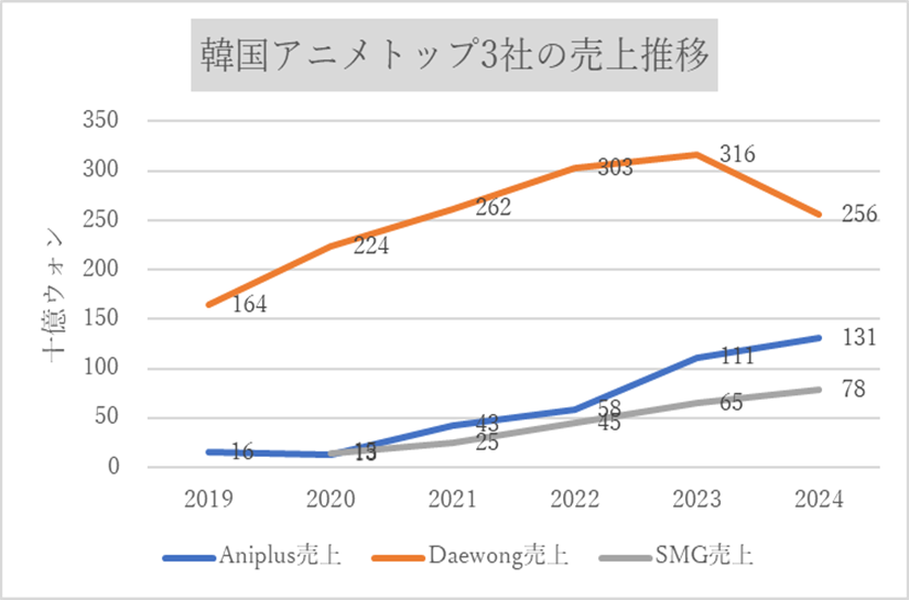 以前はCJ ENMやDaewonだけが大手企業という感じでしたが、中小だったAniplusやSMGが大手の一角を占めるようになってきています。反日が起きても「コンテンツには罪がない」と売れ行きはかわらないようになってきている。