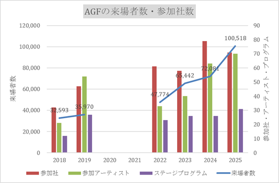 佐々木:2020~21年はイベントが主催できなかったのですが、その期間に巣ごもり需要で韓国のアニメ視聴数増加、マーケットでMDが一気にひろがっていったのは他の市場と同じではないかと思います。それにユーザーもオフラインのイベントに飢えていて、図1でみるようにAGFも2022、23、24、25とこの4年間はずっと上昇気流でした。