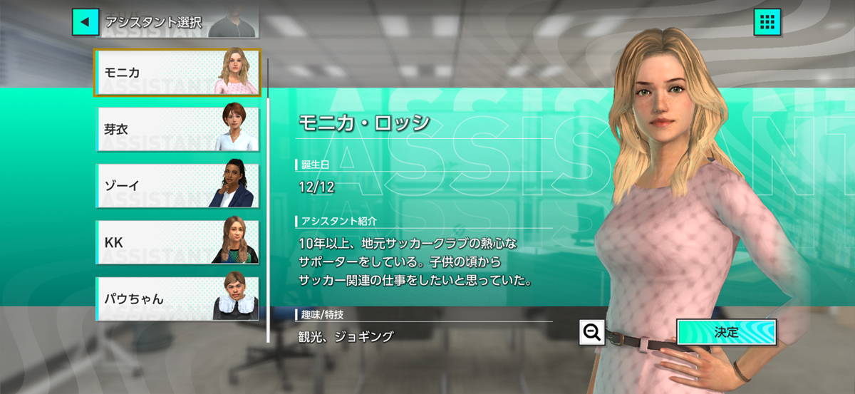 まずアシスタントについては、6名の候補者から選択できる。個性豊かな顔ぶれだけど、ここはやっぱりSUコヴェントリー時代に世話になったオリバー・オーウェンだ。