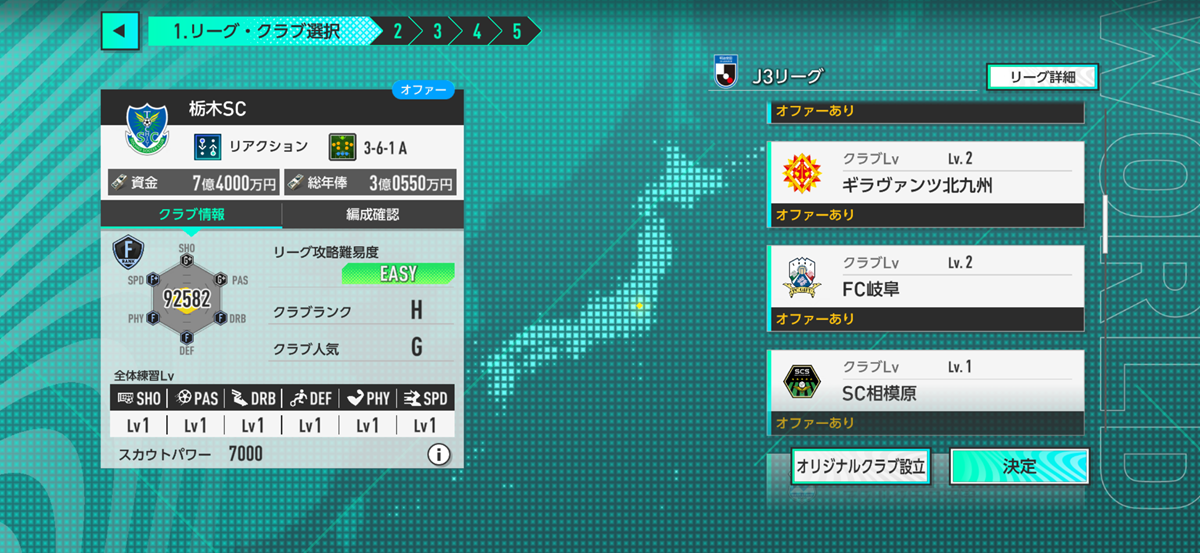 やっぱり遊ぶからにはオリジナルクラブにして、本拠地やらクラブ名やらユニフォームやら、じっくりコトコトこだわって作りたいじゃない。
