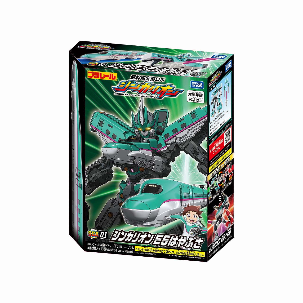 「プラレール シンカリオン」シリーズは、シンカンセンモード(車両)からシンカリオンモード(ロボット)へと変形させて遊ぶことができる玩具。今回のSGXシリーズは、第1期に登場するシンカリオンが新モデルとして進化して再登場。アニメの変形シーンをイメージした新たな変形機構と、TV アニメ第1期放送当時(2018年)に発売したDXSシリーズに比べて股関節・腰・手首など可動箇所が増えたことで、より細かなアクションが可能になった。全長約150㎜の遊びやすいサイズ感で劇中を再現して楽しめる。