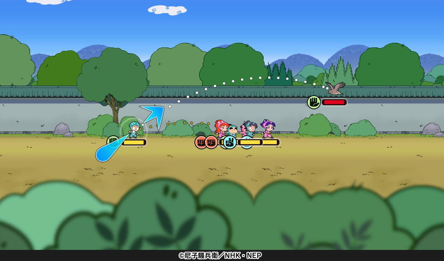 可愛らしいミニキャラになった忍たまたちを飛ばして敵を倒す、直感的でテンポの良いバトルが魅力だ。登場キャラクターは40体以上にのぼり、最大6人まで編成できる部隊を組んで、さまざまなステージに挑戦していく。