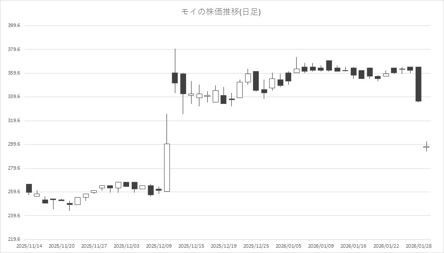 最後に騰落ランキングを見ると、ワンダープラネット<4199>やenish<3667>、monoAI technology<5240>、バンク・オブ・イノベーション(BOI)<4393>、セガサミーHD<6460>が値上がり率上位となり、優待権利落ちのモイ<5031>が急落となったほか、SHIFT<3697>、エイチームHD<3662>、ミラティブ<472A>、ユークス<4334>が値下がり率上位となった。
