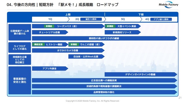 モバイルファクトリー<3912>は、1月29日、2025年12月期の連結決算を発表した。今回はその決算説明資料の中から『駅メモ!』の成長戦略について取り上げたい。