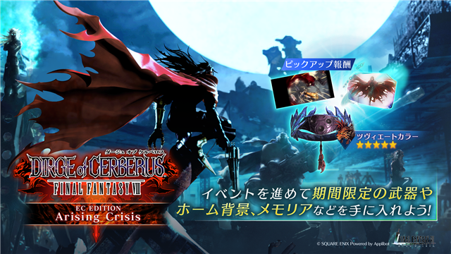 スクエニ、『FF7EC』でイベント「DIRGE of CERBERUS -FINAL FANTASY VII- ECエディション」&「ヴィンセント 新武器PUガチャ」を開催!