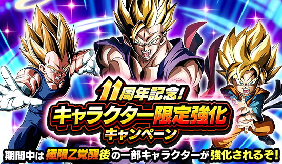 極限Z覚醒後の一部キャラクターが強化される「11周年記念!キャラクター限定強化キャンペーン」を開催している。