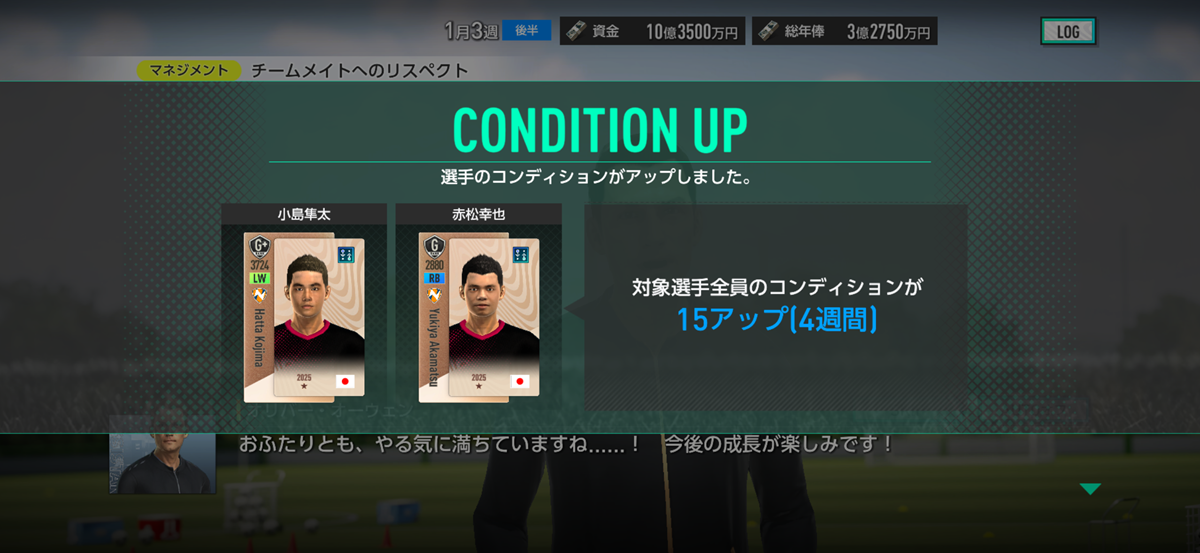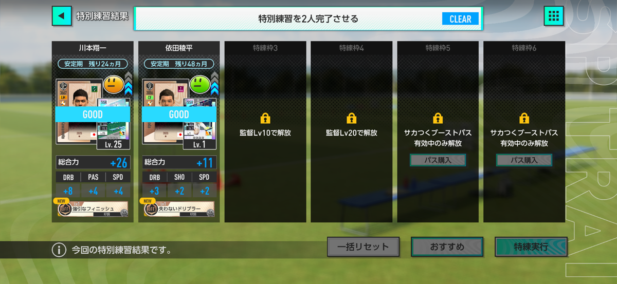 ▲3つのイベントが発生して、ちょっぴり成長する選手たち。
