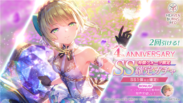 WFS、『ヘブンバーンズレッド』が本日より「4th Anniversaryキャンペーン」を開始! 「⼿塚咲」の実装や『ペルソナ5 ザ・ロイヤル』とのコラボも開催決定!