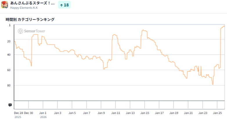 | 14 | 8 | ↓6 | あんさんぶるスターズ!!Music | Happy Elements |