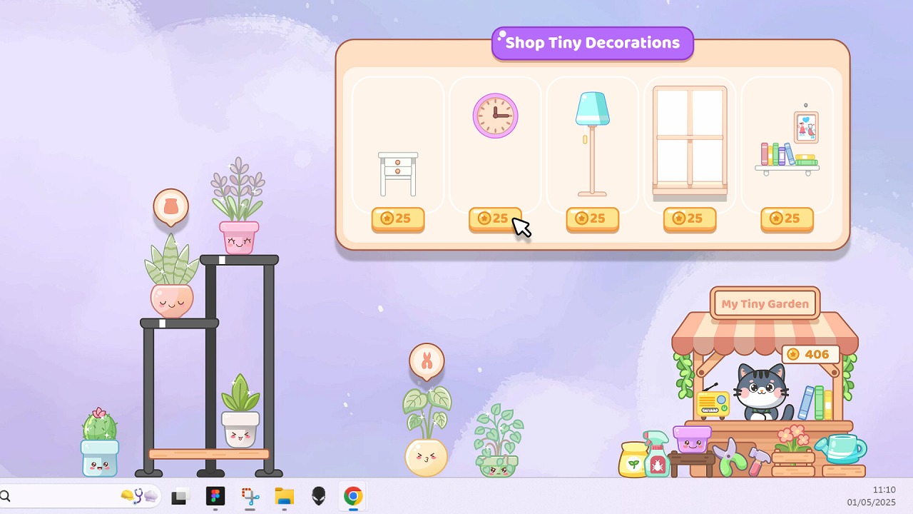 集めたコインを使えば、新しい植物やユニークなデザインの植木鉢、精巧なミニチュアデコレーションをアンロック利用できる。