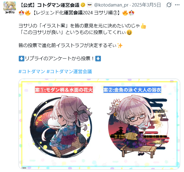 ▲『コトダマン』運営会議の一例。イラストの方向性もユーザーの投票で決まる。
