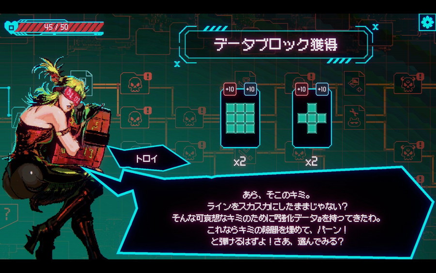 また、戦闘やイベントノードを通じて装備やブロックを獲得し、回復や強化を選択しながら独自の成長ルートを開拓する「ローグライク要素」も特徴だ。プレイするたびにマップと手に入るアイテムが変化するシステムにより、何度でも新鮮な挑戦が楽しめる。