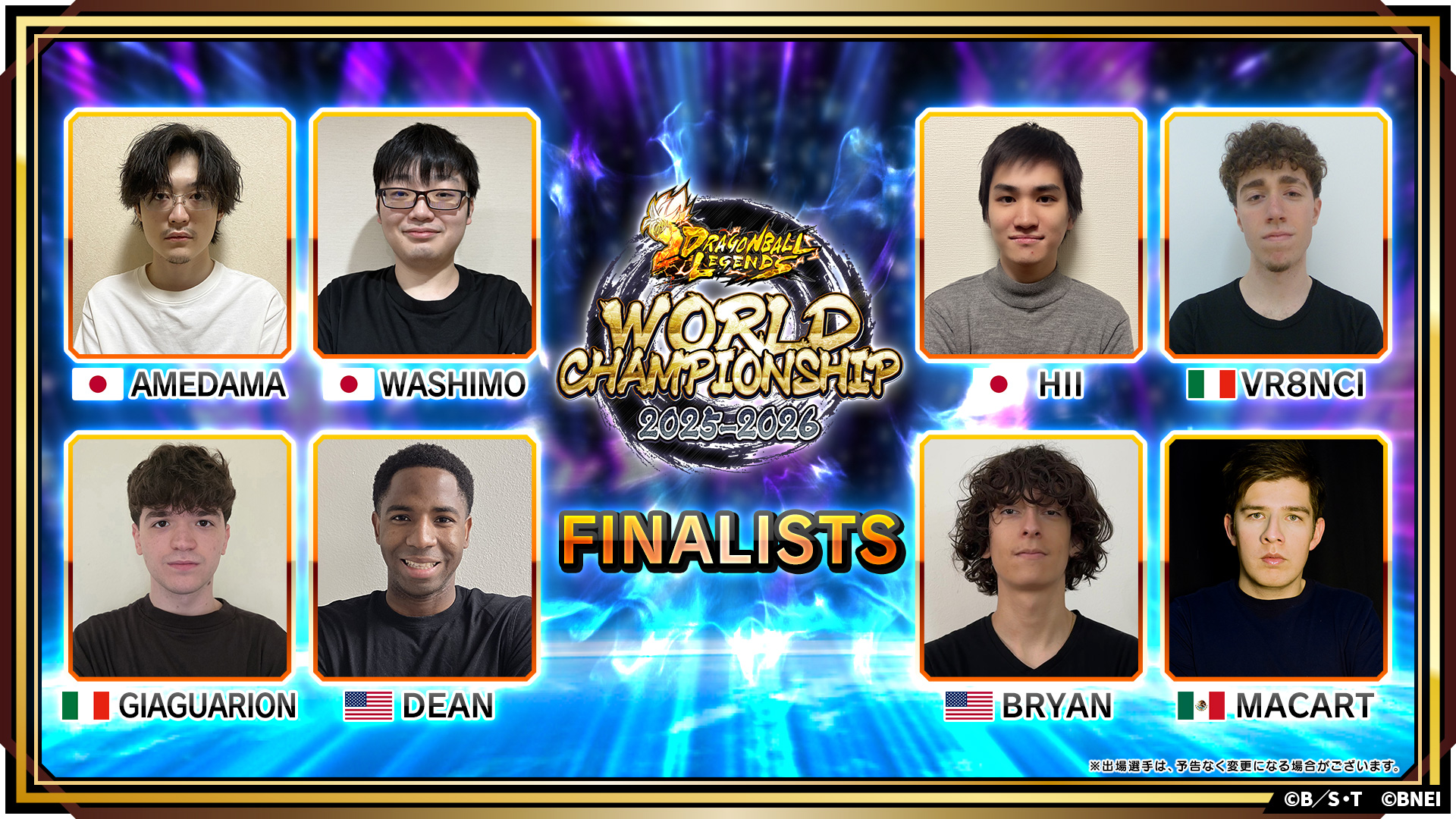 2025年7月から開催してきたオンライン予選を勝ち抜いた世界TOP8の選手が、東京に集結!