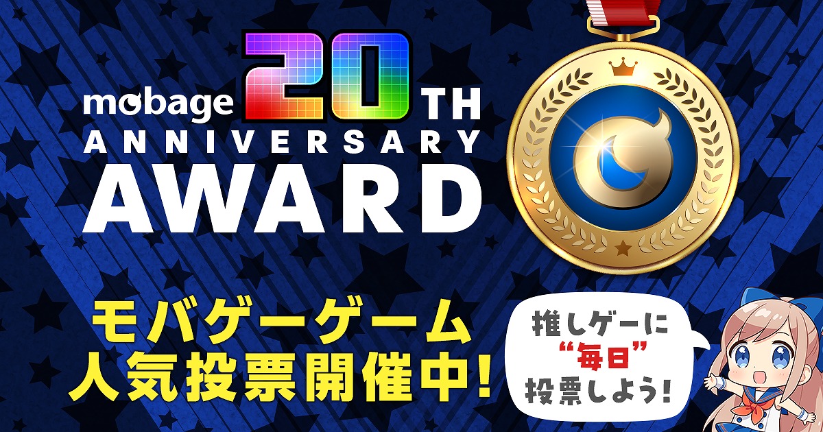 ユーザー投票で人気の「推しゲーム」を決定する「Mobage20th Anniversary AWARD」を開催する。
