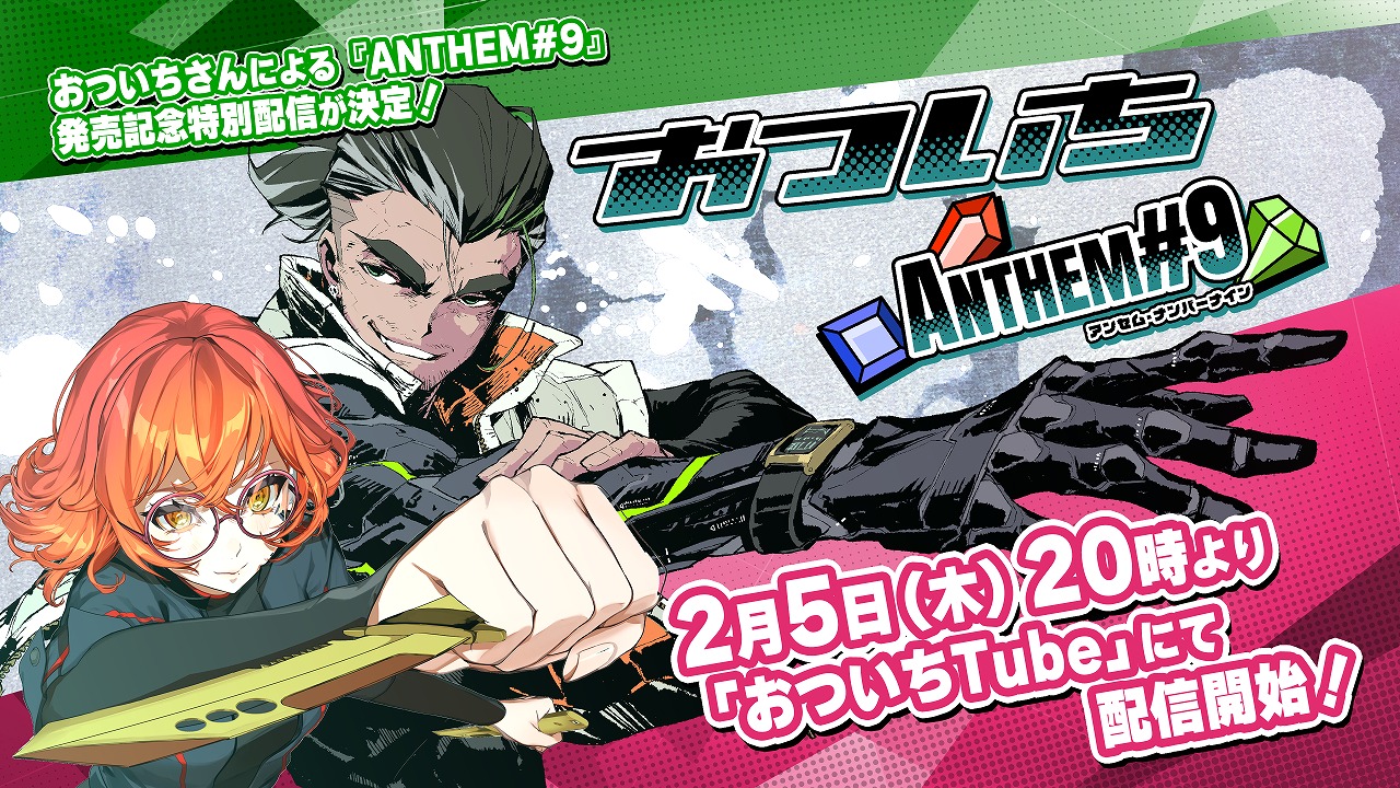 人気ゲーム実況者・おついちさんによる『ANTHEM#9』発売記念特別配信を実施する。発売直後の『ANTHEM#9』を、おついちさんの実況と共に楽しんでほしい。